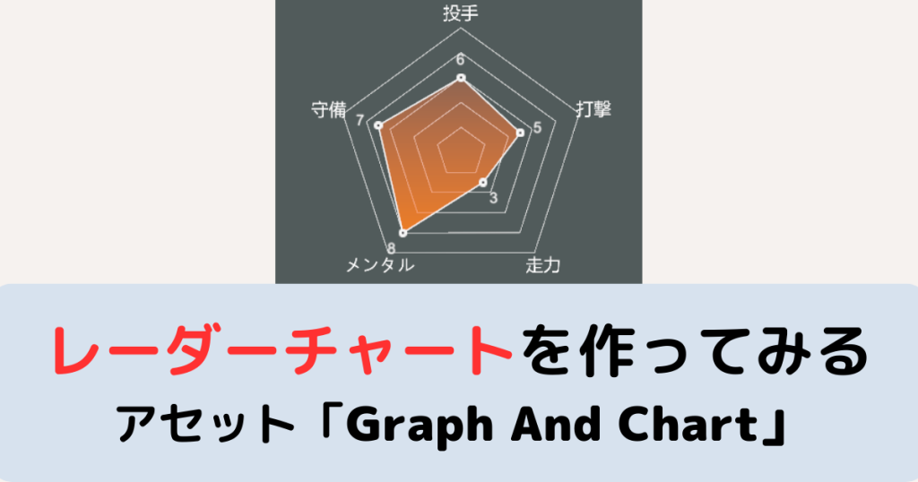 見た目が綺麗なレーダーチャートが作りたくなったので、Graph And Chartというアセットを購入しました。 今回は野球のチーム総合力を表現するようなレーダーチャートを設定していきます。 【レーダーチャートの作成・設定方法】 https://assetstore.unity.... -