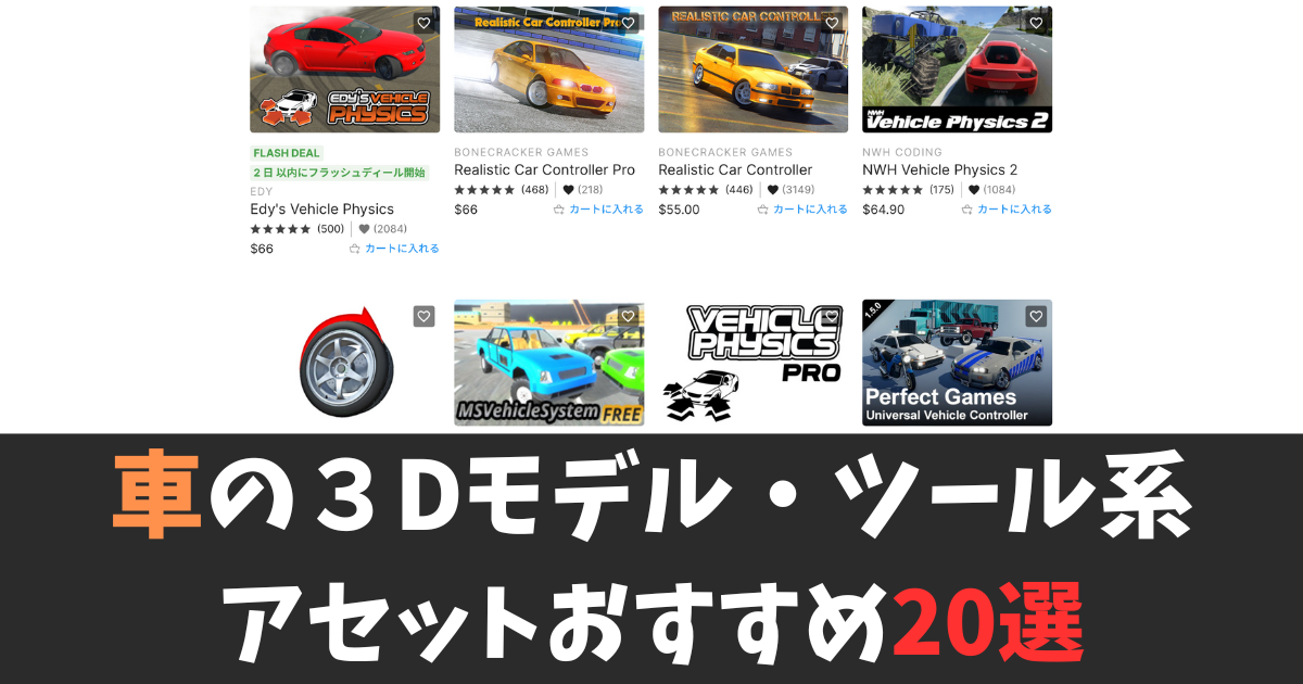 Unityアセットストアでは無料の車の3Dモデルや、ハイクオリティな有料アセット、運転ができるツール系アセットなどが充実しています。