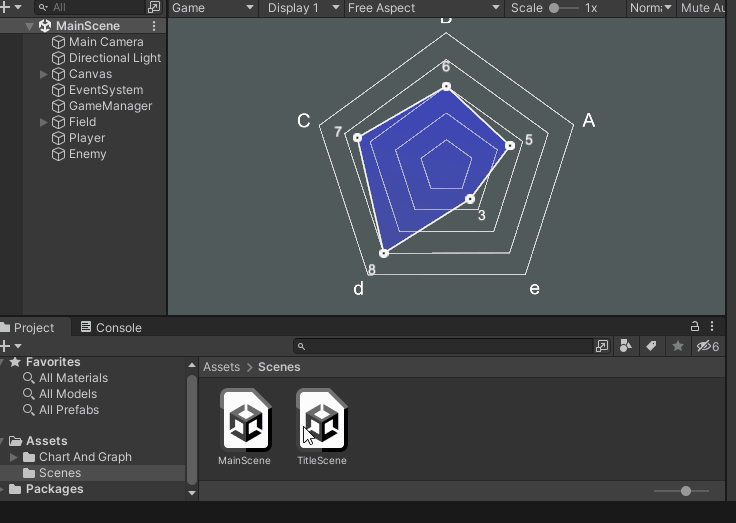 Assets内にはScenesというフォルダが最初から作成されているので、先ほどまで編集していたSceneもその中にあるはずです。
