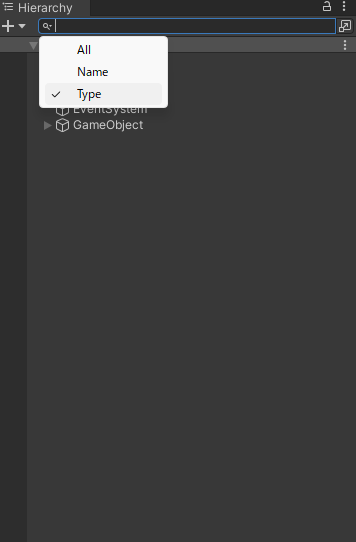 ヒエラルキーの検索ウインドウ左にある虫眼鏡アイコンをクリック→Typeを選択します。