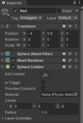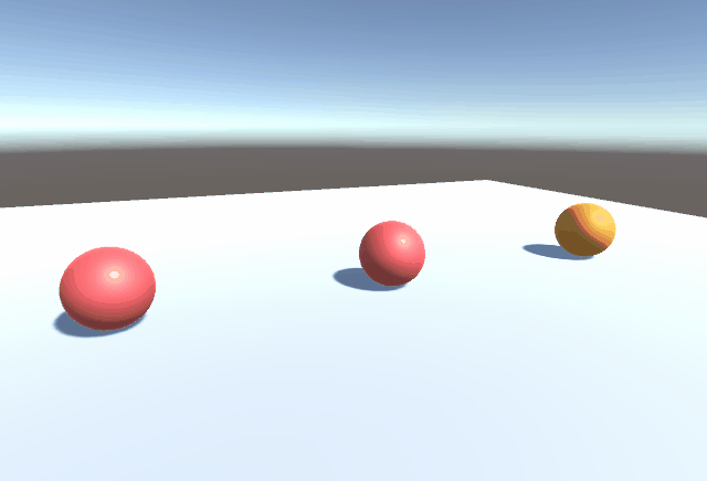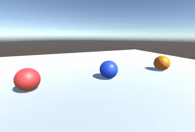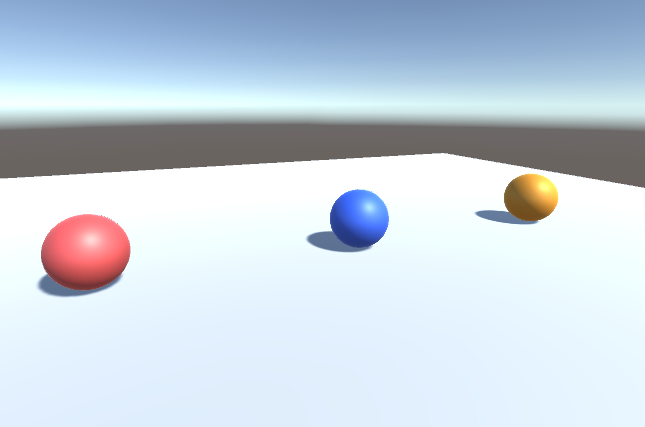下のような3色のボールを配置して、レイヤーによる当たり判定の変化を見ていきます。